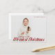 Wishing you the Merriest Christmas. Chic red calligraphy over your full family photograph on a simple holiday photo postcard. Beautiful minimalist yet festive postcards.