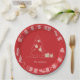 The words Merriest Christmas in retro vintage lettering, a white sketch tree with faux gold foil ornaments and gifts are featured on these red paper plates - available in 2 sizes - personalised with your family name. Stylish for any Christmas holiday occasion or give as a hostess gift. MATCHING items in our store.
