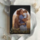 Our festive and elegant holiday card design with a unique arched layout is the perfect way to show off your favourite vertical or portrait orientated family photo. Design features "Merriest Christmas" in shining gold foil typography and hand lettered script, with your family name curved over the top of the photo. Cards reverse to a white winter snowflake pattern.