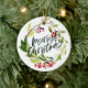 Merriest Christmas watercolor floral Holiday Ceramic Ornament