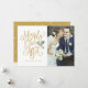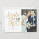 merrily ever afterour first christmasmarriedholidayjust married holiday cardnewlywedsthank youtypographygoldholiday wedding thank you card