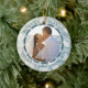 Commemorate a First Christmas as Mr. and Mrs. with this stunning keepsake holiday ornament featuring two photos (one on each side) and a teal, blue and white bokeh background and teal ribbon. The front has the title MERRILY MARRIED and the back has a handwritten script word CHERISH as an overlay on your picture. The design beautifully accentuates winter, aquatic, nautical or beach photos and more. Makes an ideal wedding or holiday gift for a new bride and groom. Contact the designer via Zazzle Chat or makeitaboutyoustore@gmail.com if you'd like this design modified or help with transferring it to another ornament style or product.