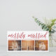 This modern holiday wedding announcement or a first christmas card for the newlywed couple features 3 photo collage on the front and a simple Christmas greeting which says 'Merrily Married' in a festive red, trendy calligraphy script.