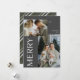 Merry 2 Photo Collage Modern Grey Christmas Holiday Card