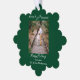 This minimalist merry and almost married holiday card is the perfect greeting from an engaged couple. The design features classic typography against a dark green background with gold snowflakes. Photo template via Pixabay licensed under CC0 and must be replaced with your own photo