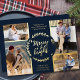 Merry and Bright 4 Photo Collage Blue and Gold Foil Holiday Card