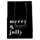 Merry and Bright Black Modern Christmas Holiday Medium Gift Bag