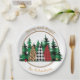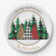 Personalise this Merry and Bright Buffalo Plaid Leopard Print Trees Paper Plates by adding your family name.