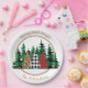 Merry and Bright Buffalo Plaid Leopard Print Tree Paper Plate