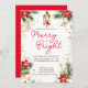 Christmas dinner party classic lantern with a candle pines red poinsettia golden snowflakes and sprinkles snowy pines watercolor template invitation instant download