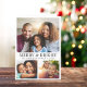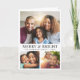Elegant Christmas holiday folded greeting card that features a collage of 3 photos, "Merry & Bright" in classic serif typography and your family name and the year in simple modern lettering.
