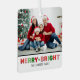 Wish everyone a very Merry Christmas with this cute and simple ornament featuring your favourite family photo and the phrase "Merry & Bright" on the front. You can easily personalise the text, including your family name. The design showcases a cheerful mix of reds, pinks, and both dark and light shades of green, perfectly capturing the whimsy and joy of the holiday season. This ornament is a charming way to share holiday cheer with your loved ones.
