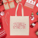 Classic and vintage Christmas theme tote bag design featuring typography text that says "merry and bright" with stars.