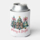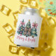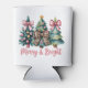 Merry And Bright Christmas Tree Pink Leopard Bow Can Cooler