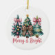 Merry And Bright Christmas Tree Pink Leopard Bow Ceramic Ornament