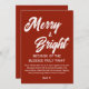 Merry and Bright Christmas White Script Red Holiday Card