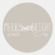 Round stickers featuring a grey background with white text that reads Merry and Bright. We have the matching Modern Merry and Bright holiday photo cards, postage, and address labels too!