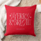 Classic and vintage Christmas themed pillow featuring typography text that says "Merry & Bright" with stars.