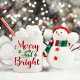 This fun and festive holiday coffee mug features the saying "Merry And Bright" in Christmas red and green modern script.