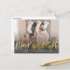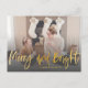 Elegant and simple Christmas greetings card. Stylish 'Merry and Bright'' text is in gold with 1 photo. Customise with your unique information.