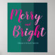 Merry and Bright Green and Pink Christmas Poster