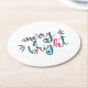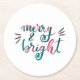 Merry and bright - green and pink round paper coaster