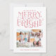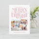 This festive Christmas card features the greeting Merry and Bright in hand lettering alongside three family photos. Customise the background colour to match your photos!