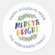 This cute modern Christmas sticker features whimsical typography that reads Merry and Bright with a branch wreath frame in traditional colours. Personalise it with your own holiday greeting and family name to use for envelope seals or gift wrapping labels. Use the design tools to customise the fonts and colours or upload your own photos.