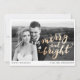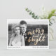 Stylish and modern Merry and Bright holiday photo card featuring faux gold foil text, photo and text placeholders, and a red and white dot pattern on the back.
