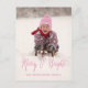 Send out this simple, elegant, versatile, script font, "Merry and Bright" photo postcard for the holiday. Elke Clarke© Girly pink script font text overlay. For other colours contact store.