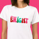 Get revved up and ready to celebrate Christmas with this fun, colourful tee. Featuring the text "Merry and bright" in ultra bright tones of pink, red, green and aqua in a retro bubble style of typography.