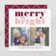 Celebrate the season with a clean, modern “merry and bright” square holiday card greeting in rich burgundy and soft blush. This minimalist two-photo layout keeps your favorite moments front and center with timeless typography. The coordinating burgundy argyle back adds a cozy, classic finish for your message and details.