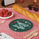 Elegant and Modern Vintage Christmas Paper Plates featuring a polkadot snowy background, snowflakes, fir branches, floral poinsettias, ornamental flourished lettering, and mistletoe botanical garland theme to represent the best of the holidays. It is inspired by the Christmas songs of Christmas and a great way of expressing Holiday Cheer for those you care. Created with one-of-a-kind designed lettering and illustration for those who just love Unique and Novelty Styles! Designed by Katrina Sutton.