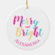 Merry and Bright Personalised Colourful Christmas Ceramic Ornament