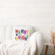 Merry and Bright Pine Tree Reindeer Snowman Cushion