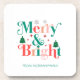 Merry and bright modern font, pine trees, and snowflakes on white background.