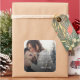 Merry And Bright Pretty Script Photo Happy Holiday Square Sticker. Beautiful Christmas Stickers for all your Christmas stationery requirements Celebrate your first Christmas as a couple . These Photo Holiday stickerscan be customised by changing the photo and the names. Check out the other products in the collection "OUR FIRST CHRISTMAS AS MR AND MRS "