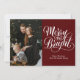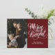 Merry and Bright Red Calligraphy Modern Photo Holiday Card