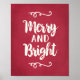 Merry and Bright holiday wall art print / poster features a brushed script typography design with scroll accents and rustic ruby red background colour.