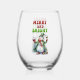 A funny and cheerful Christmas design showcases a jolly snowman dressed in a long green coat with a matching top hat, red scarf, and mittens. He holds a glass of red wine in one hand and white wine in the other. The festive red and green text reads, "Merry and bright." This design is available on a variety of products, making it a perfect gift for wine lovers.