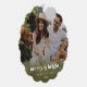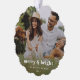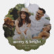 A stylish modern holiday photo ornament with a bold retro typography quote "merry & bright" in white. The greeting, name and year can be easily customised for a personal touch. A trendy, minimalist and contemporary design to stand out this holiday season! The image shown is for illustration purposes only to be replaced with your own photo. The placeholder image is of a happy young couple having a picnic with thier dog in a meadow.