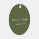 Simple, stylish, trendy "merry + bright" christmas tree ornament with modern minimalist typography in white on a dark moss green background. The greeting, family name & year can be easily customised for a personal touch. A quirky, unique christmas card to stand out from the crowd!