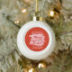 Original illustration of a folk art inspired Christmas decorated ornaments hanging around hand lettering saying Merry and Bright. Around is dotted hand lettering saying Xmas 2025. Bright festive red with modern light pink. Touch of sweet nostalgia with vintage vibe.