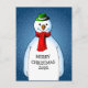 The merry snowman wearing a green hat and a red scarf is ready for Christmas.
