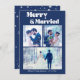 merry and married 3 photos collage wedding blue holiday card