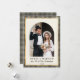 Merry and Married Arch Photo Black Gold Plaid Holiday Card