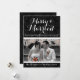 Elegant, timeless, classic, dark black and charcoal gray damask background pattern in bold black and white. The newlywed couple is finally married, and ready to show off their new life together with custom photo Holiday cards with the theme "married and merry" . Wish family and friends and wedding guests a great time with this black and white damask background.