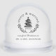 Holiday snow globe home decor and gift for the newlyweds featuring modern rustic Christmas tree design with personalised photo, name, and year.