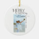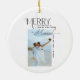 Merry and Married Script Photo Christmas Newlyweds Ceramic Ornament