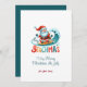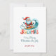 Merry Beachmas for Very Merry Christmas in July party invitation featuring surfing Santa and colourful retro typography.